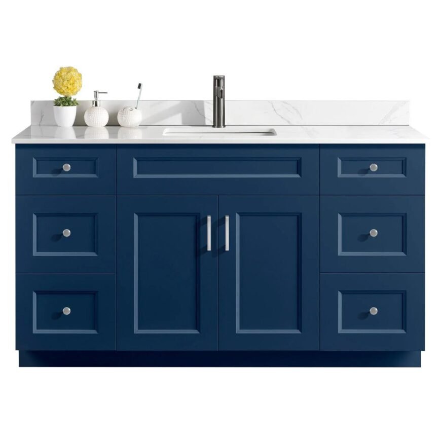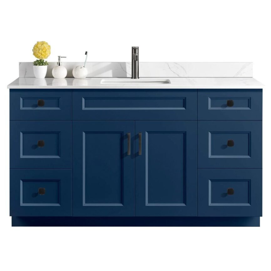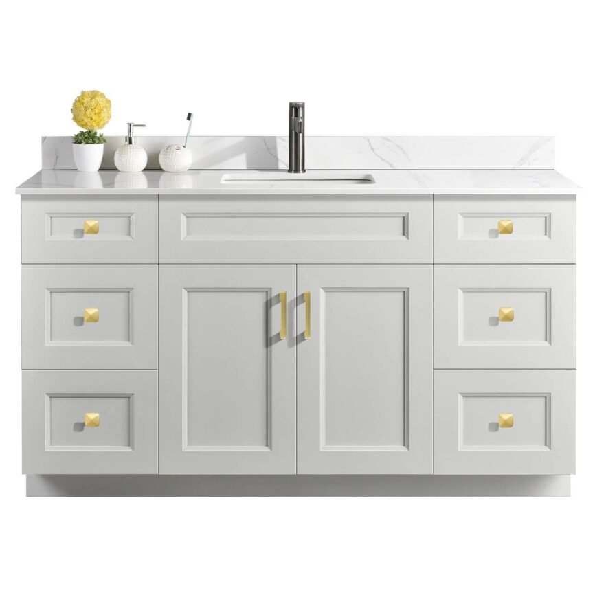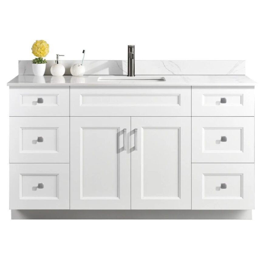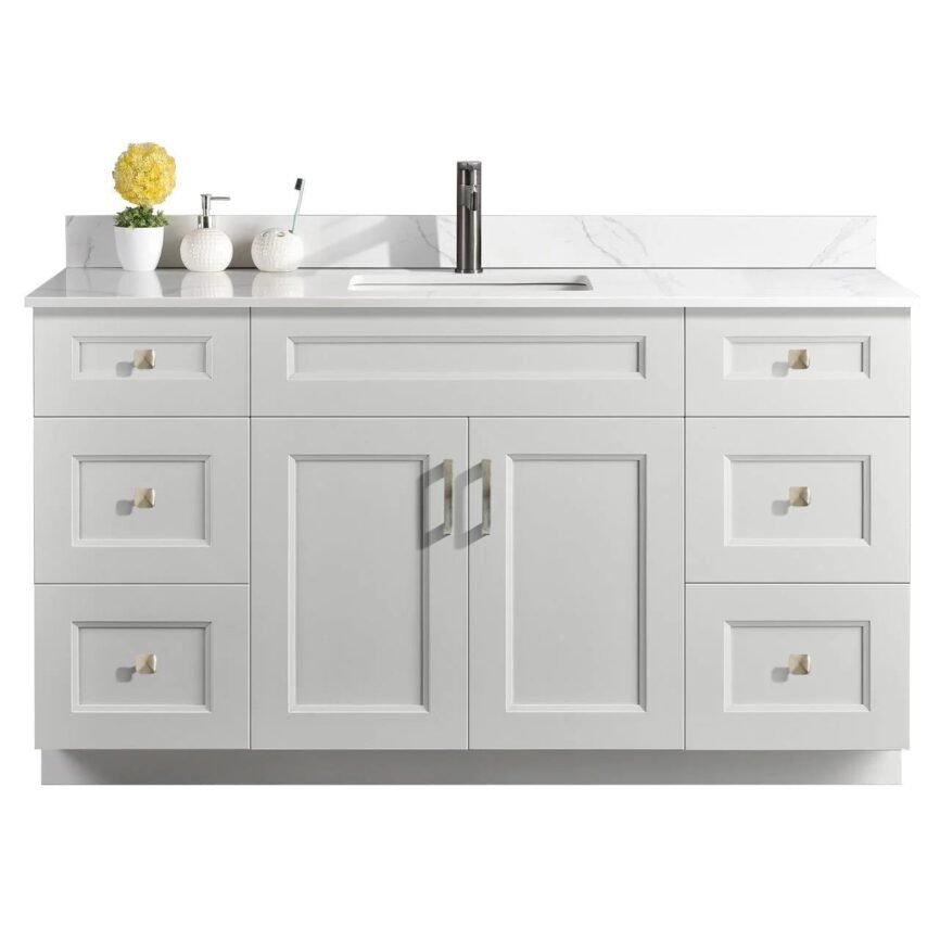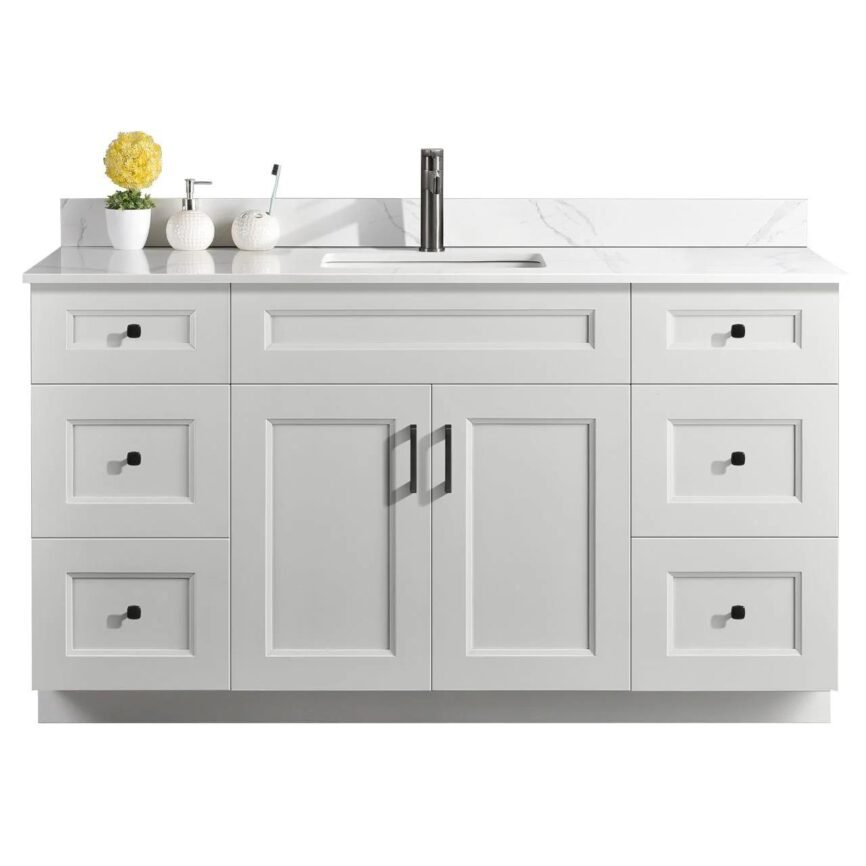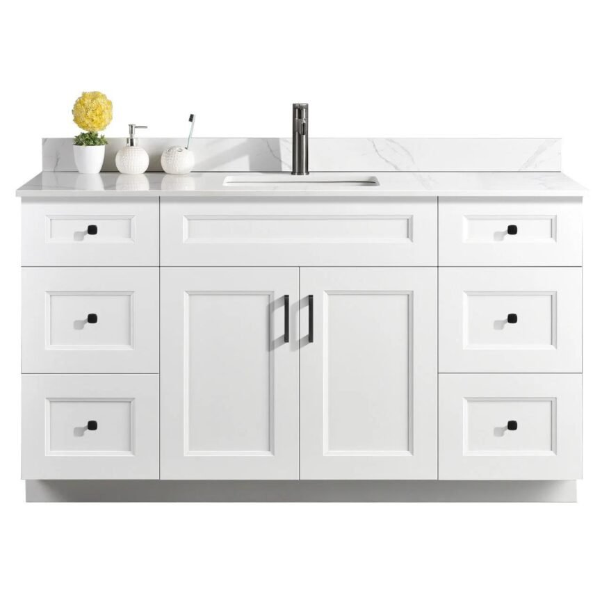 60” Single Sink Bathroom Vanity (SOLID WOOD) – Beveled Shaker/Free Standing with 2 doors and 6 Drawers