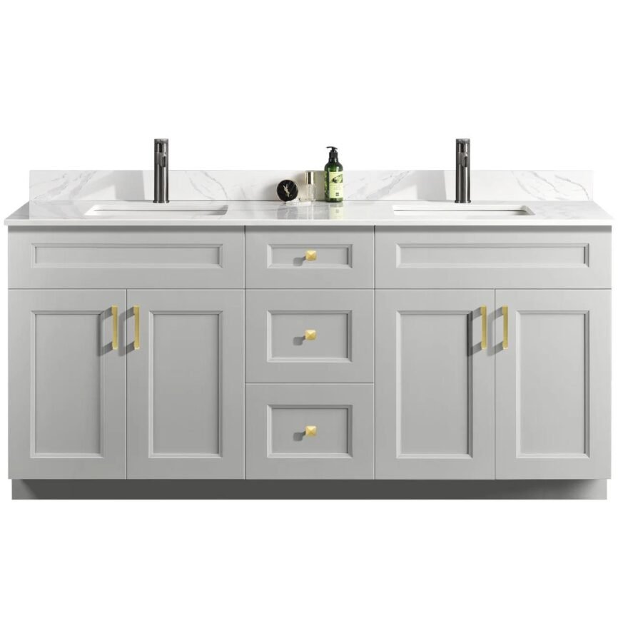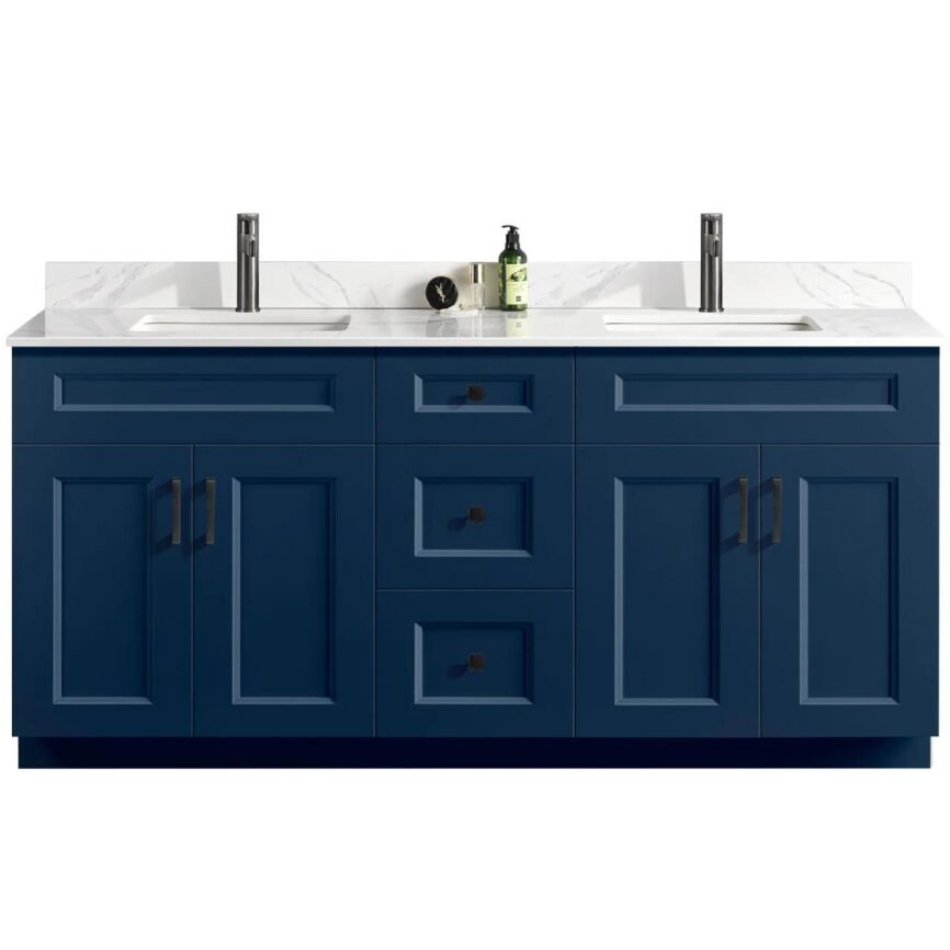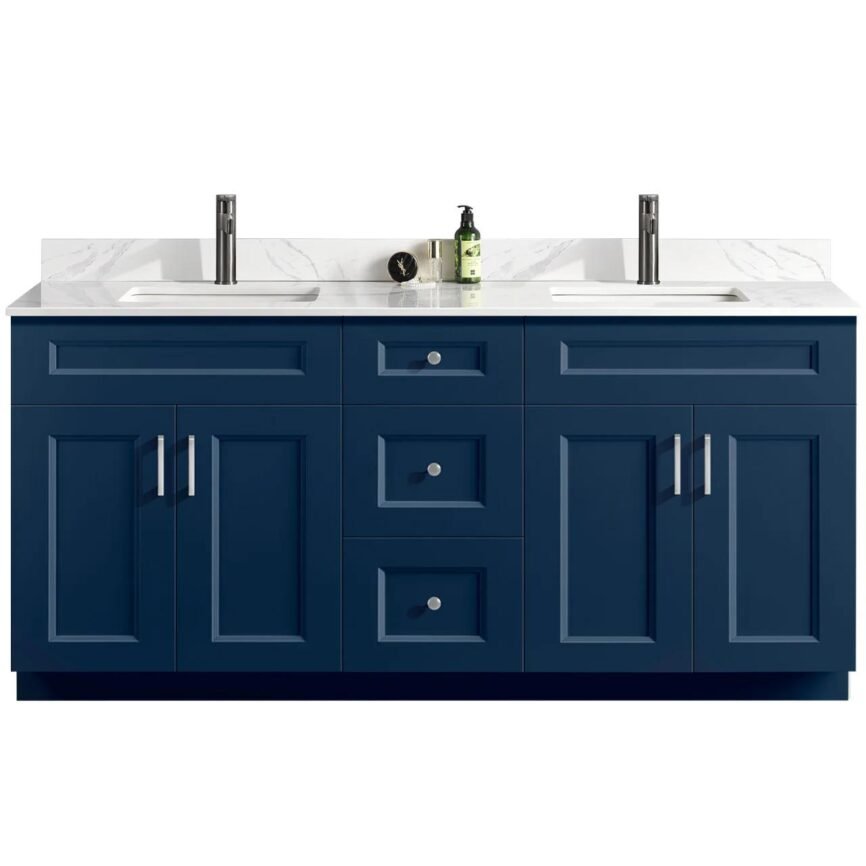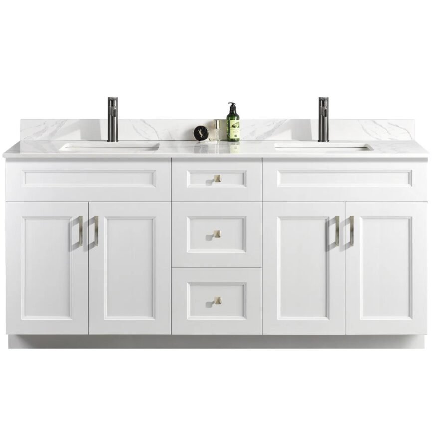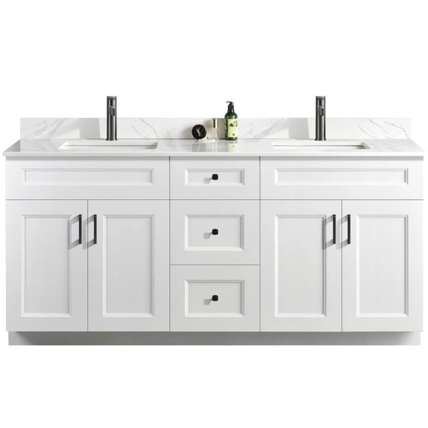 72” Double Sink Bathroom Vanity (SOLID WOOD) – Beveled Shaker/Free Standing With 4 Doors and 3 Center Drawers