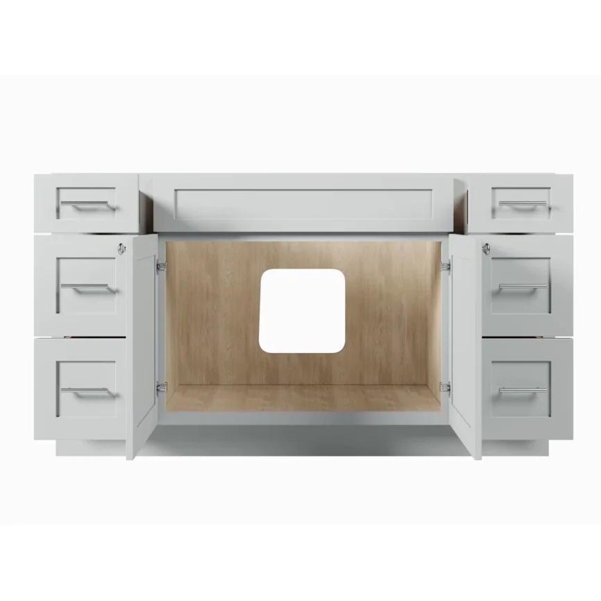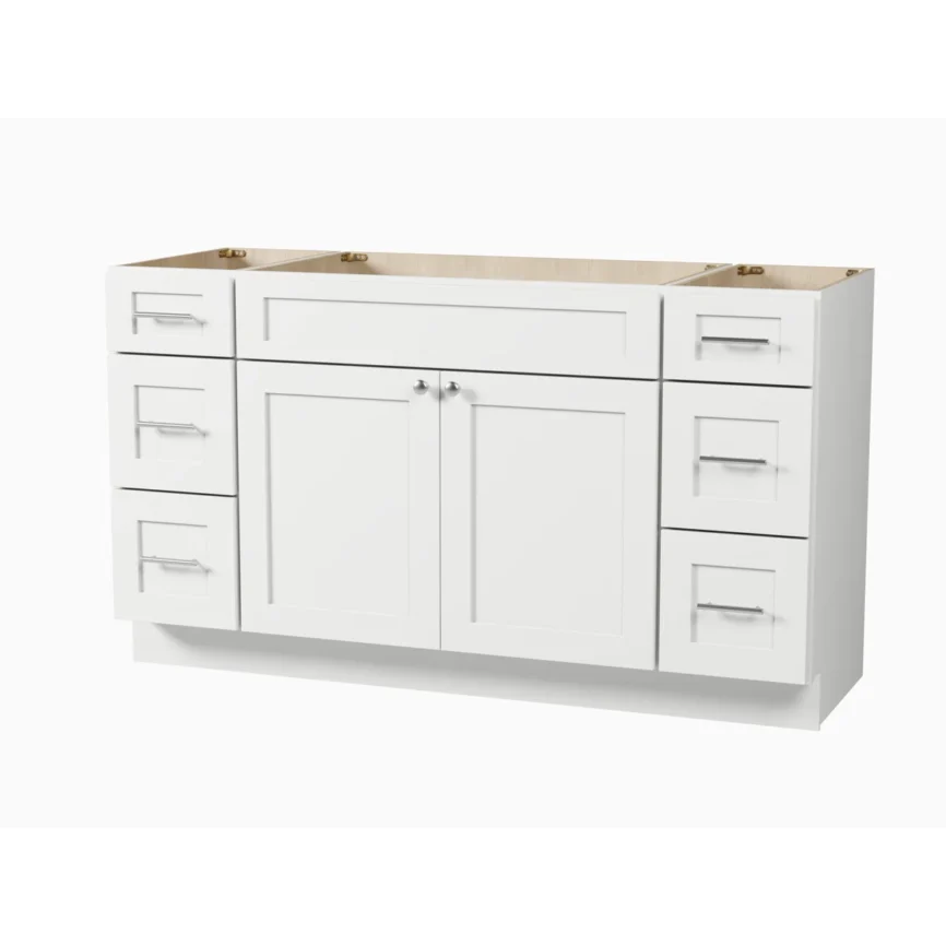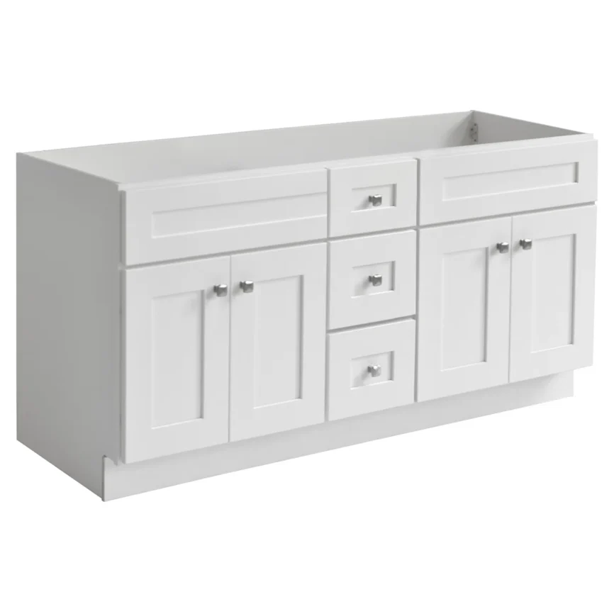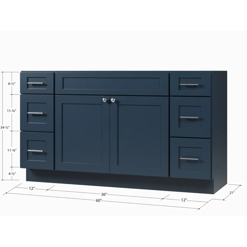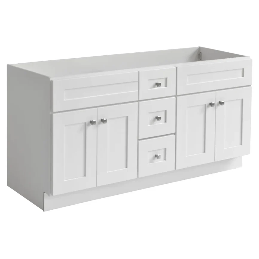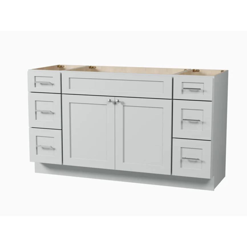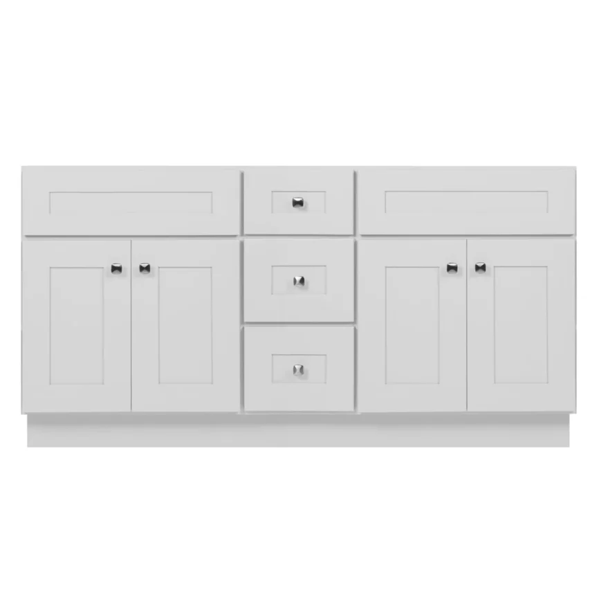 60” Double Sink Bathroom Vanity (SOLID WOOD) – Regular Shaker/Free Standing With 4 Doors and 3 Center Drawers
