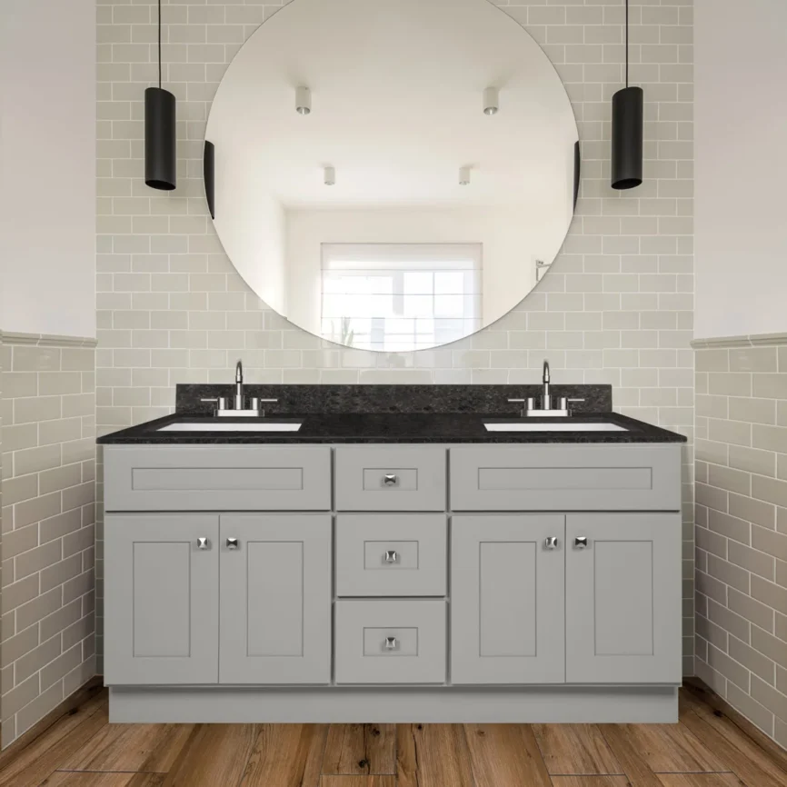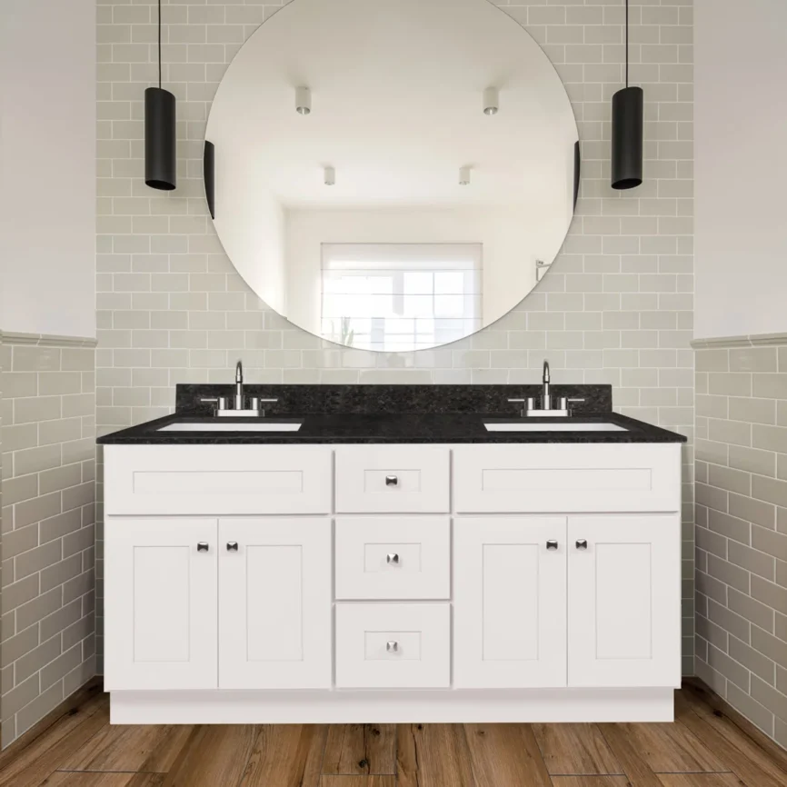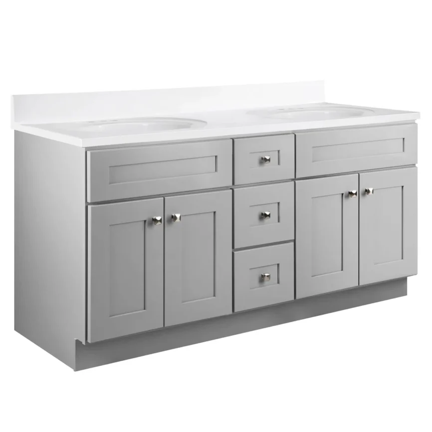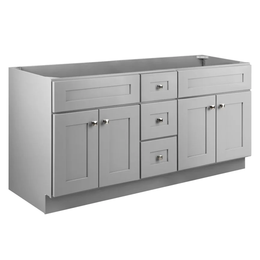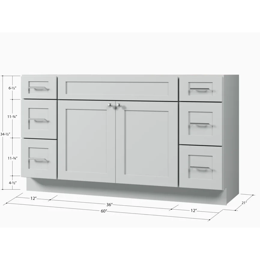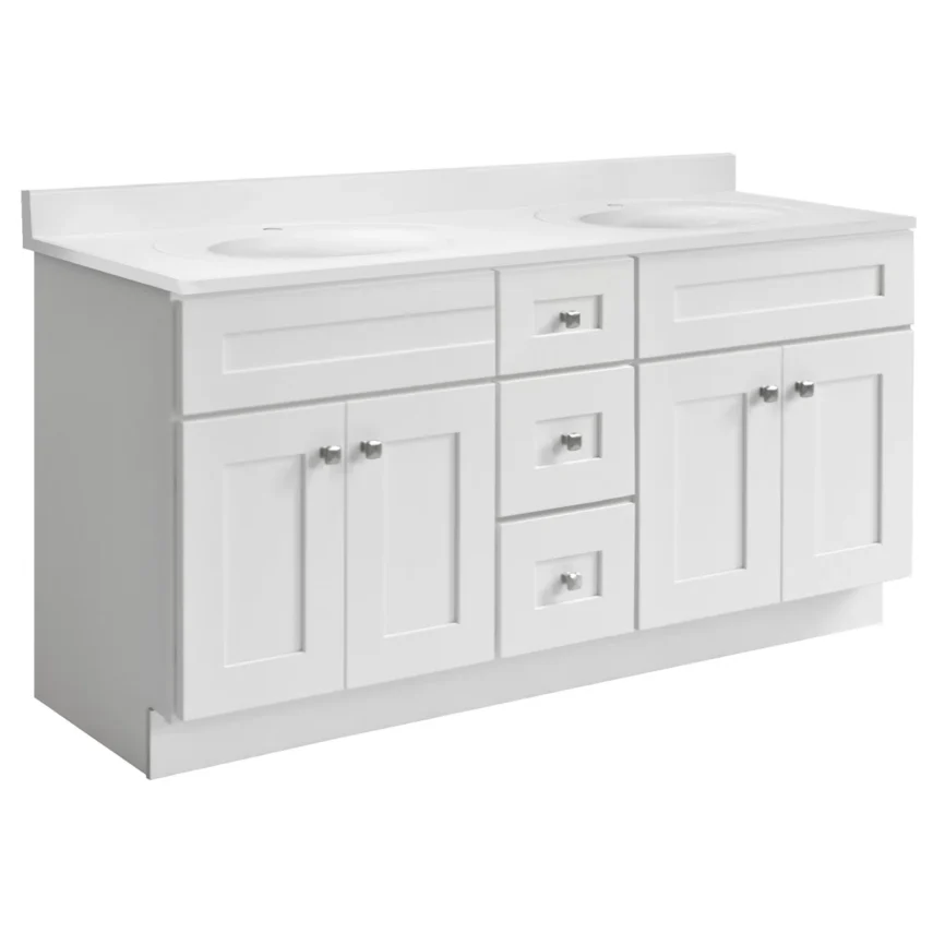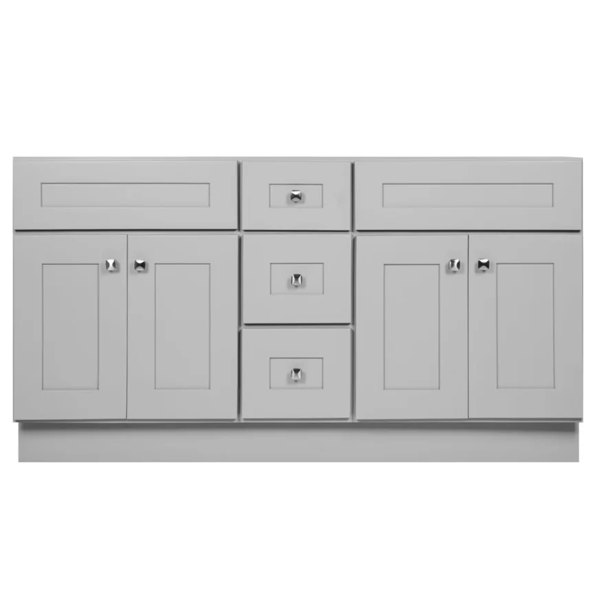 60” Double Sink Bathroom Vanity (SOLID WOOD) – Regular Shaker/Free Standing With 4 Doors and 3 Center Drawers