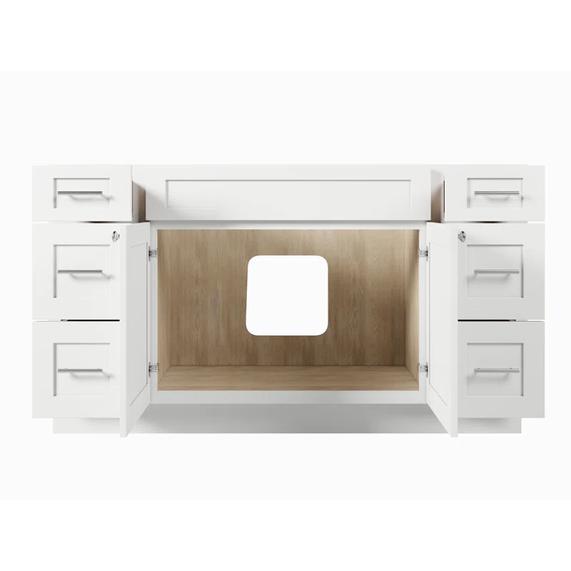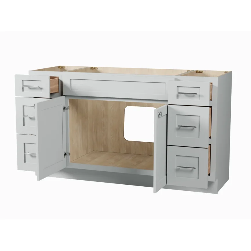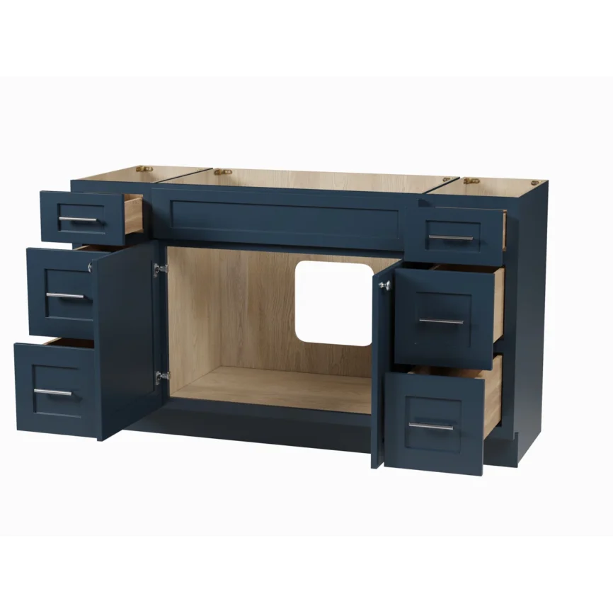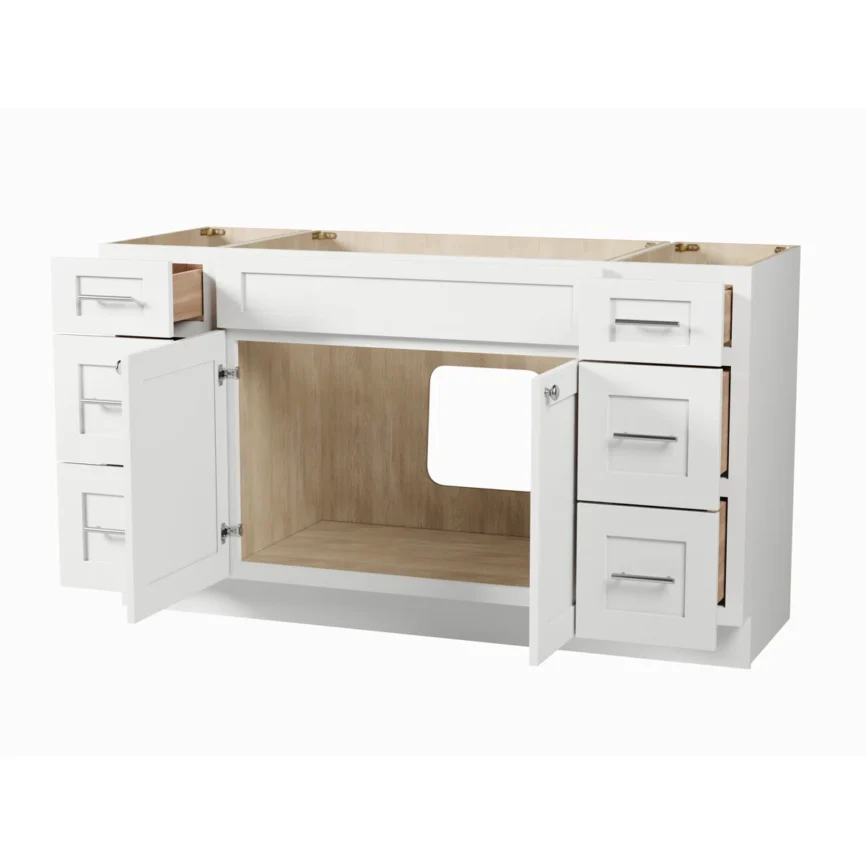 54” Bathroom Vanity (SOLID WOOD) – Regular Shaker/Free Standing with 2 Doors and 6 Drawers