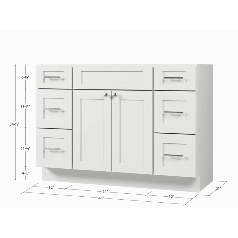 48” Bathroom Vanity (SOLID WOOD) – Regular Shaker/Free Standing with 2 Doors and 6 Drawers