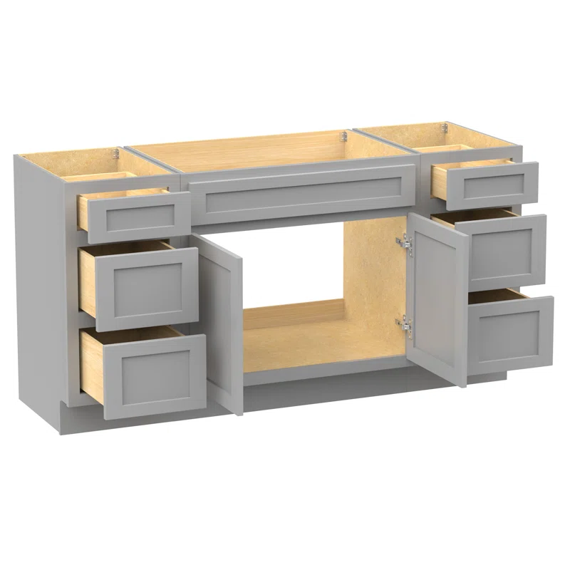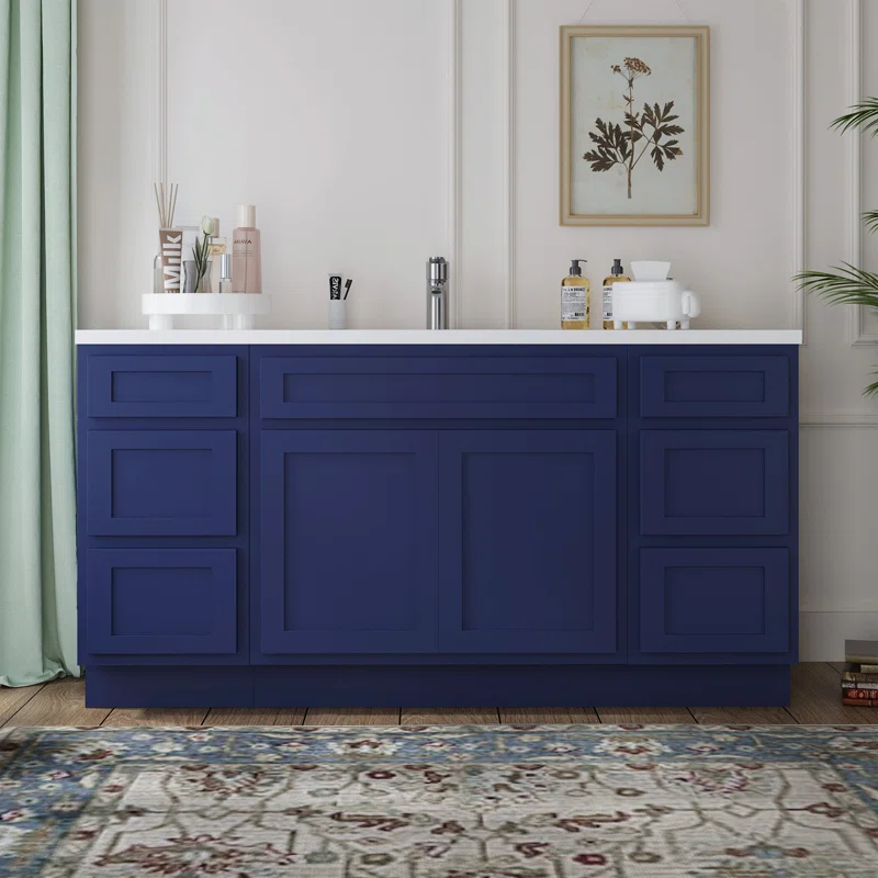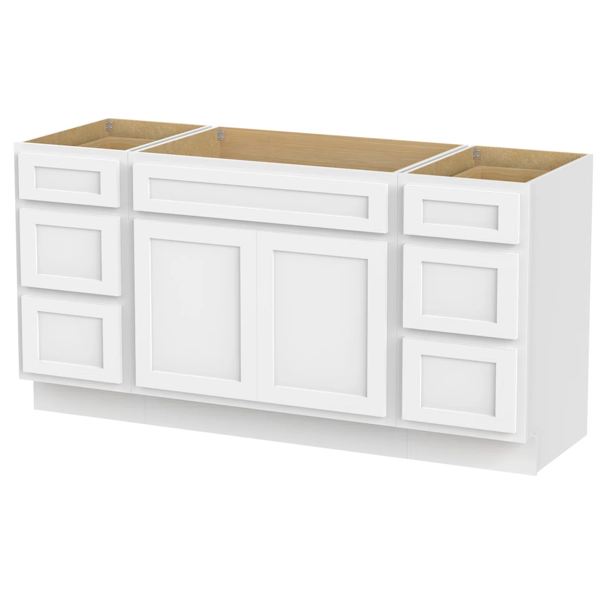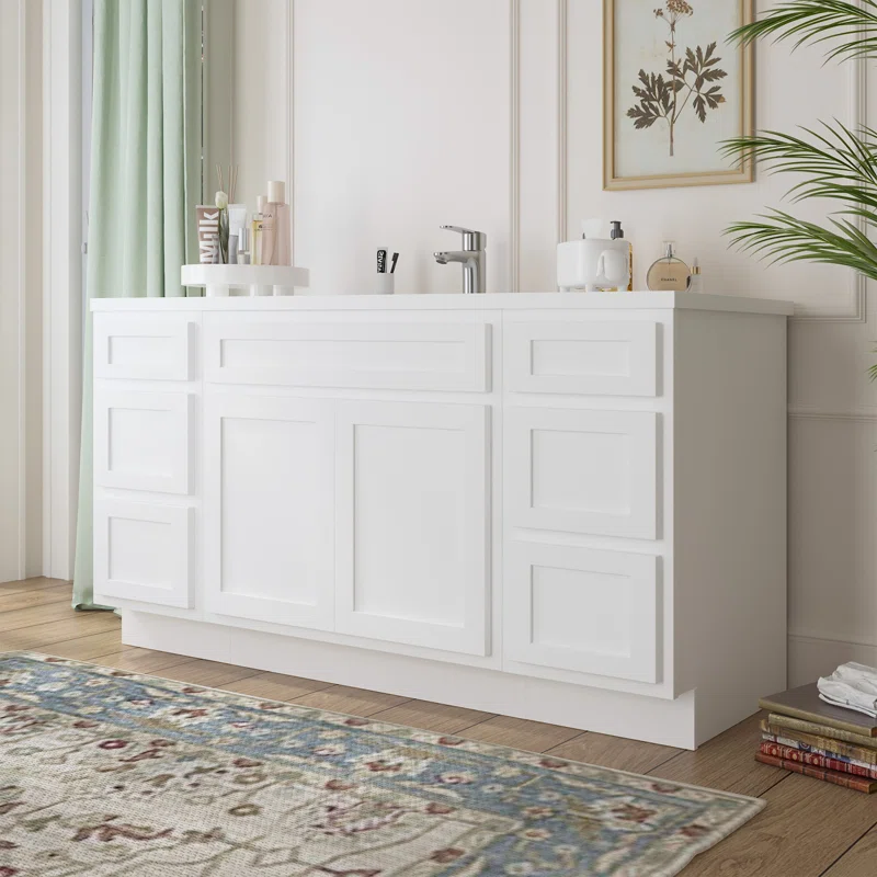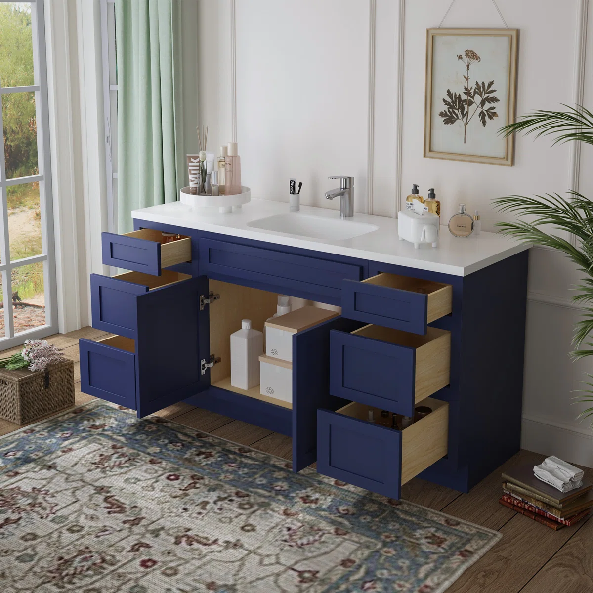 60” Single Sink Bathroom Vanity (SOLID WOOD) – Regular Shaker/Free Standing With 2 Doors and 6 Drawers