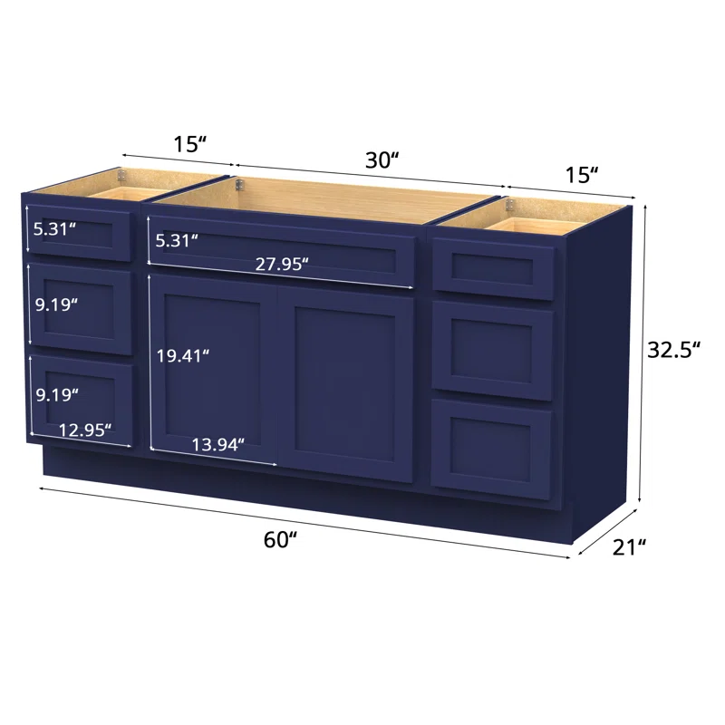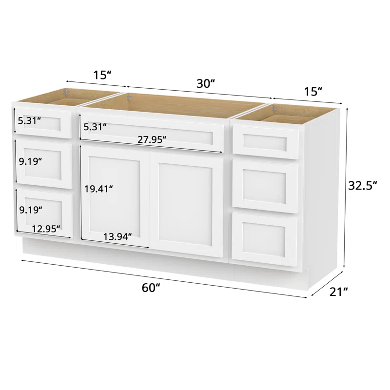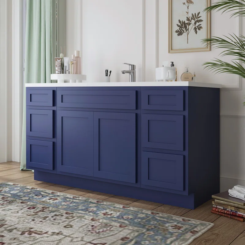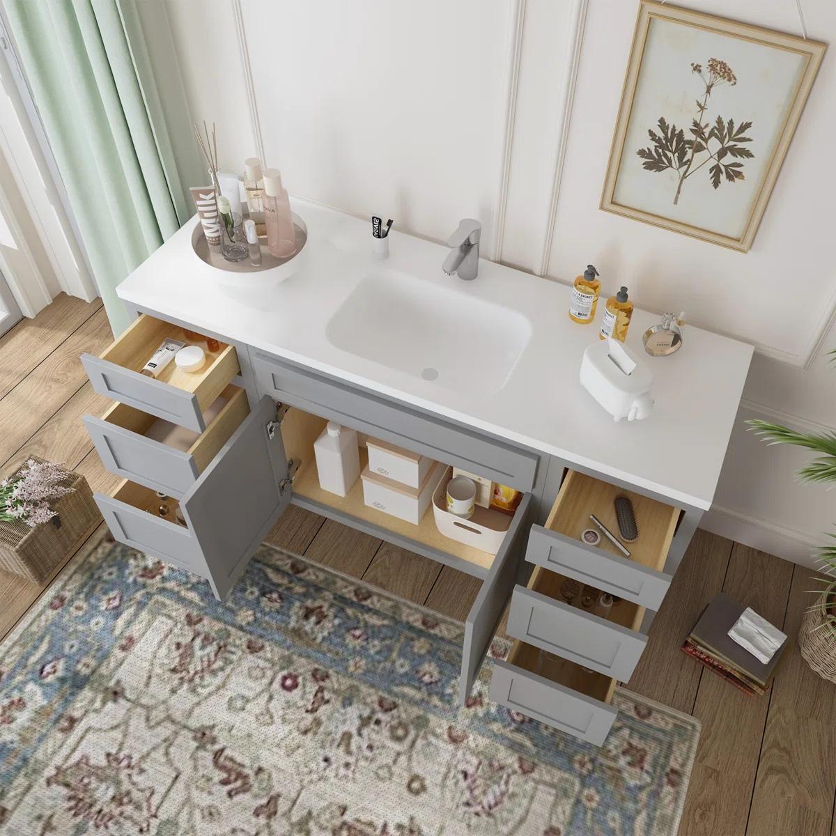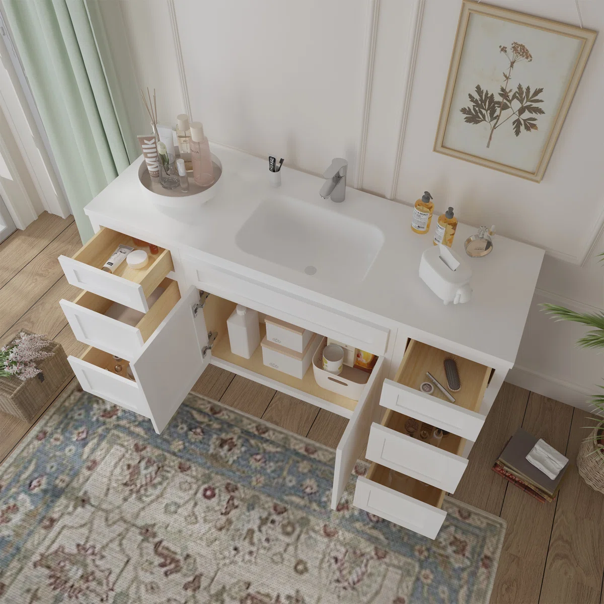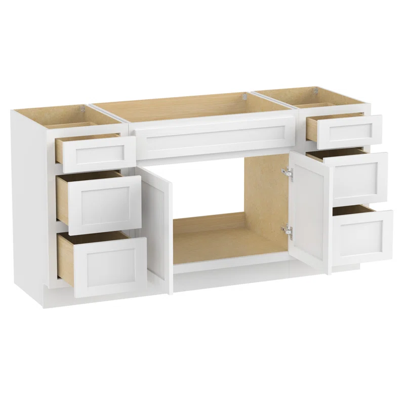 60” Single Sink Bathroom Vanity (SOLID WOOD) – Regular Shaker/Free Standing With 2 Doors and 6 Drawers