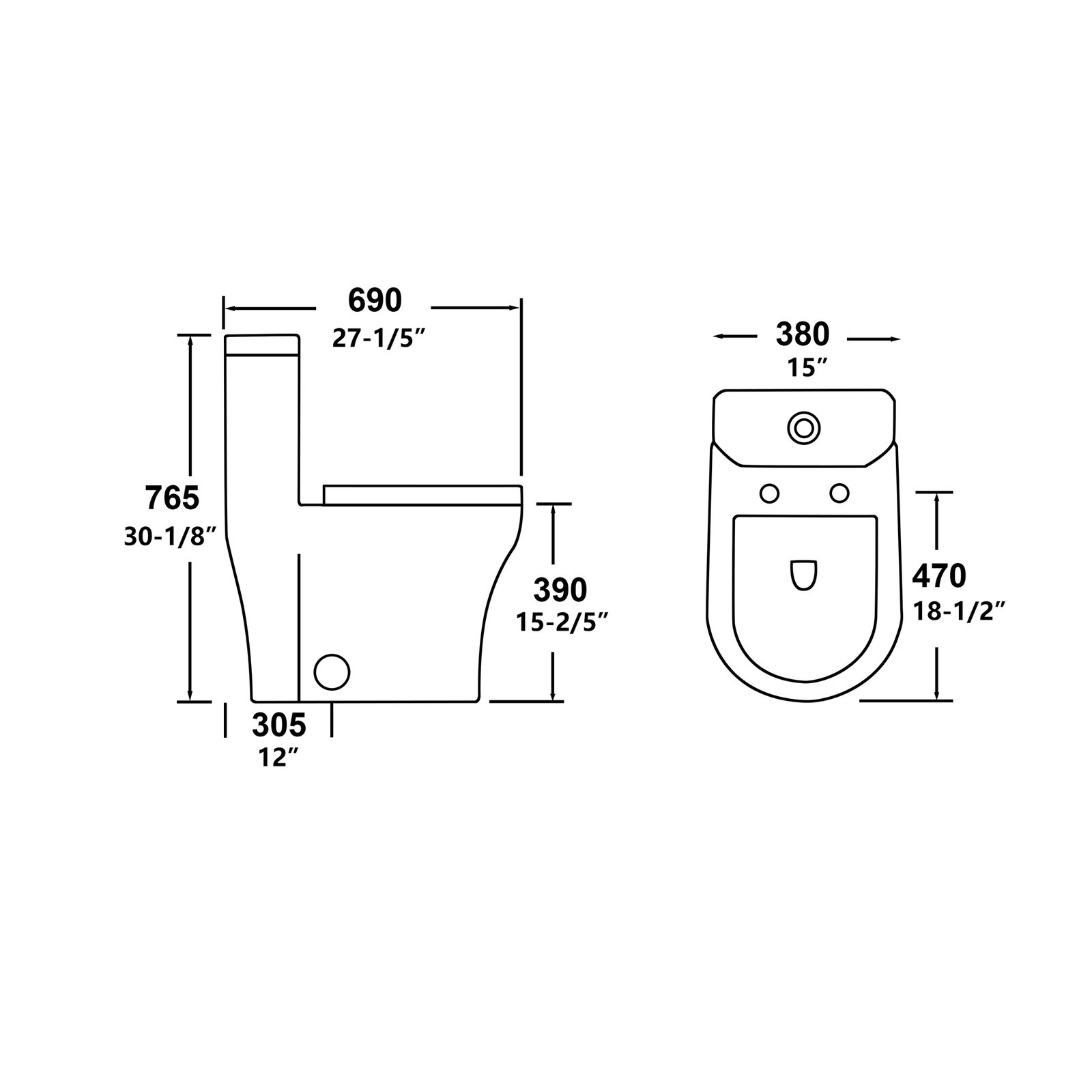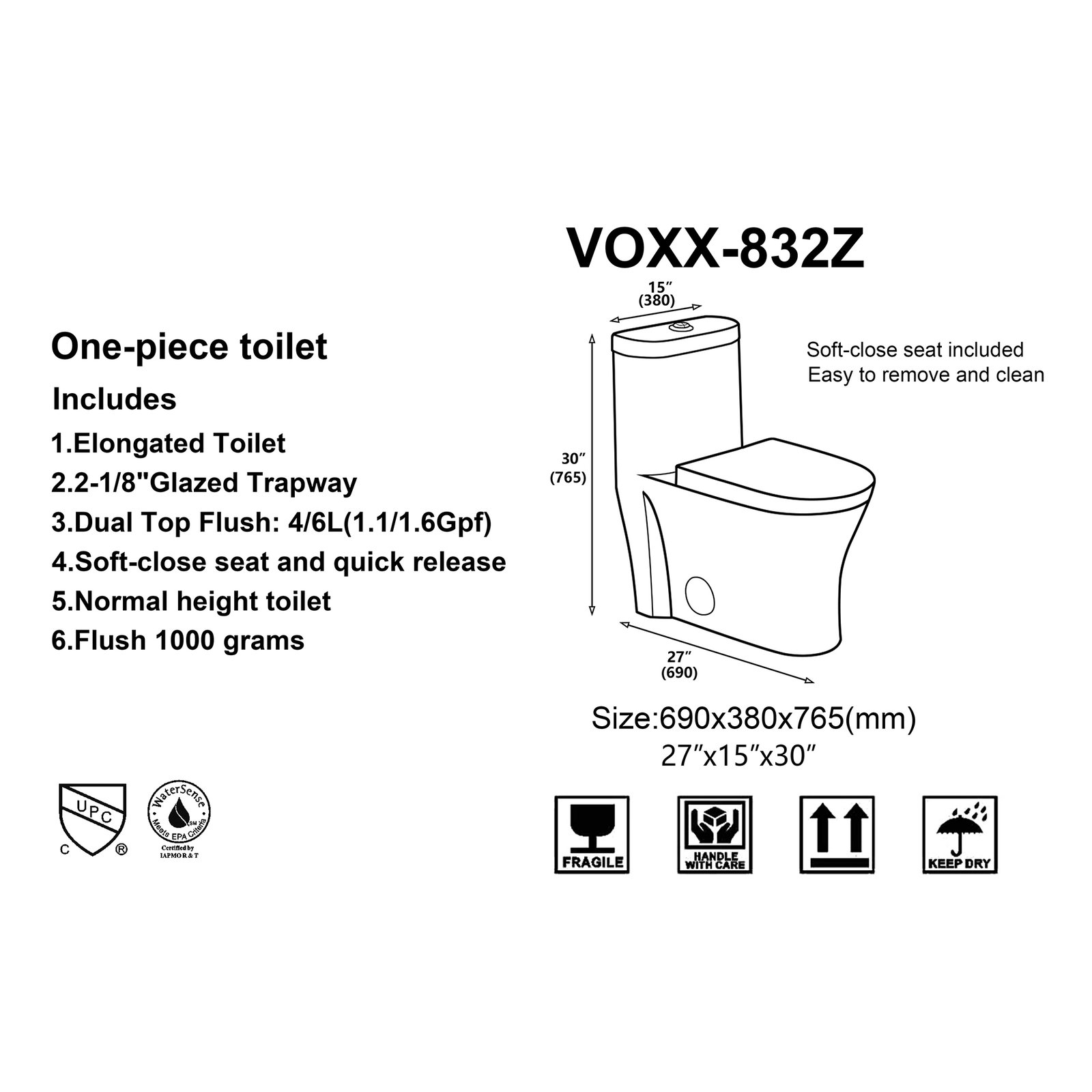 VOXX-832Z Elongate High Efficiency 1-Piece Toilet – Dual Flush